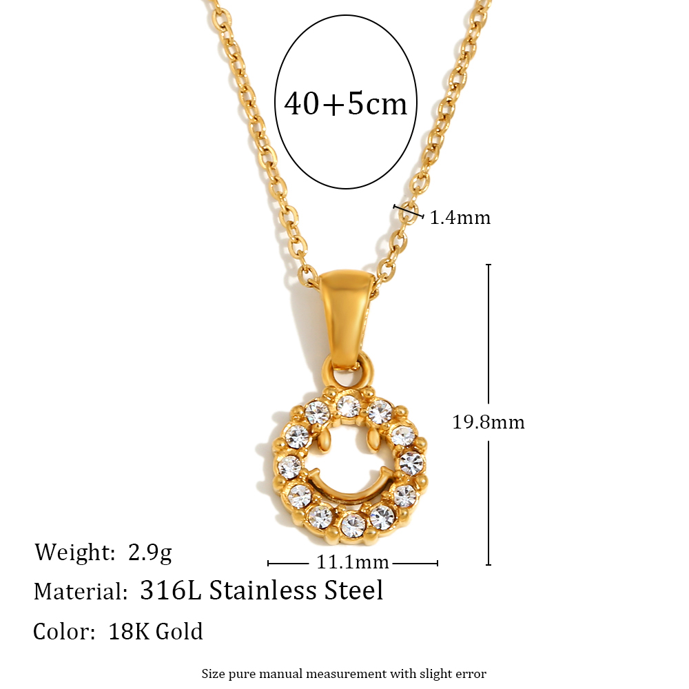 18K Gold Plated Stainless Steel Cubic Zircon Smile Pendant Necklace