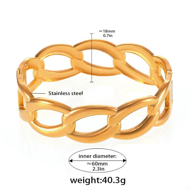 Whether you’re dressing up for a special event or adding a subtle touch of elegance to your work attire, this bracelet is the perfect choice. The openable cuff design allows for easy wear and the gold-plated finish provides a radiant, luxurious look that complements any outfit. Plus, the durable stainless steel construction means this bracelet will retain its shine and style for years to come.