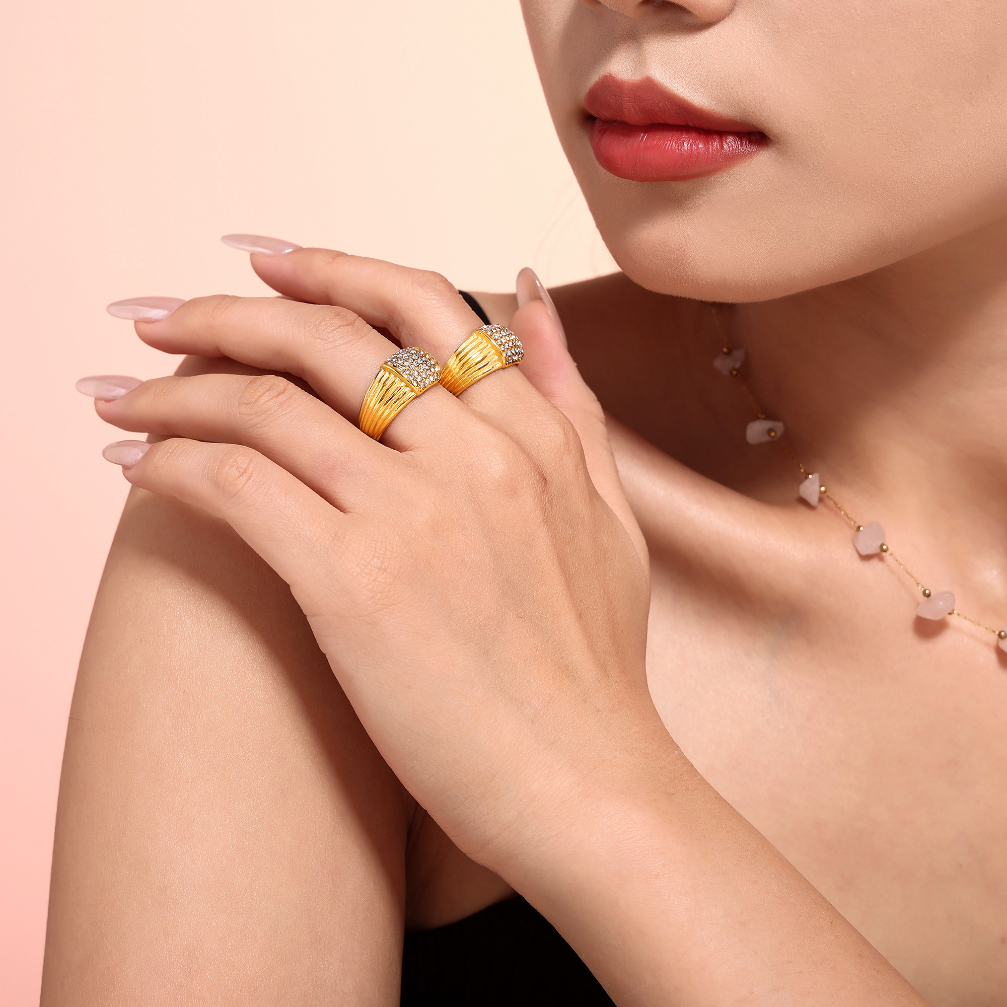 This ring is more than just jewelry—it’s a statement of elegance and refined style. The multi-line texture creates a dynamic, eye-catching design that draws attention, while the shimmering rhinestones bring a touch of glamour. Whether you’re heading to a formal event or just looking to elevate your day-to-day ensemble, this luxurious piece adds just the right amount of sparkle.