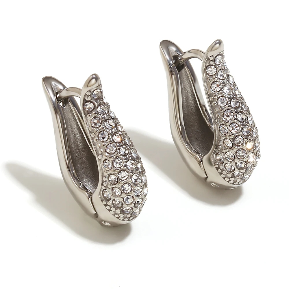 Shine bright with these stunning 18K gold-plated U-shaped hoop earrings. Featuring sparkling rhinestones, these earrings offer the perfect blend of elegance and modern flair. Crafted from durable 316L stainless steel, they are hypoallergenic, tarnish-free, and waterproof—making them perfect for everyday wear. Whether you’re heading to a party or simply want to add a bit of luxury to your daily look, these earrings are the perfect choice to complement any outfit.