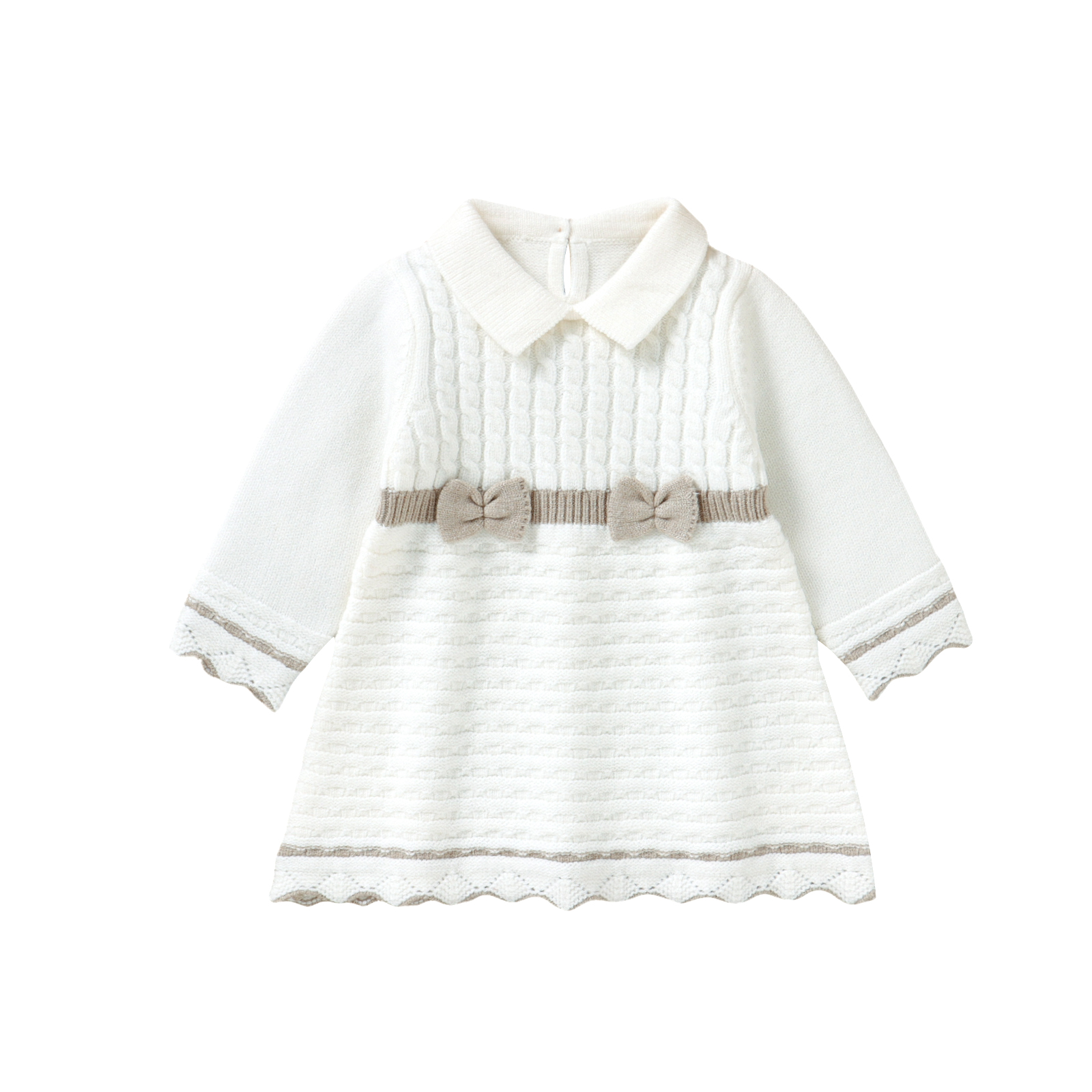 Not only is this baby sweater dress stylish and comfy, but it’s also designed with both practicality and cuteness in mind. Its solid color makes it easy to pair with other pieces, while the sweet bow decoration adds a touch of charm that’s sure to steal hearts. Whether she’s attending a birthday party or playing outside, your baby girl will love twirling around in this adorable dress.