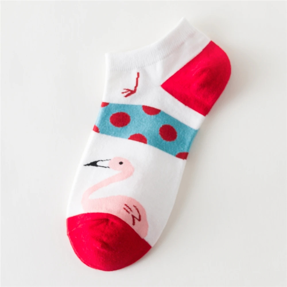 Add a splash of personality to your wardrobe with these colorful Flamingo Patterned Short Ankle Socks. Whether you’re lounging at home, heading out for errands, or styling a fun outfit, these socks bring a unique blend of comfort and charm to your daily routine. Featuring a playful flamingo design and preppy stripes, they’re a delightful way to express your vibrant style.