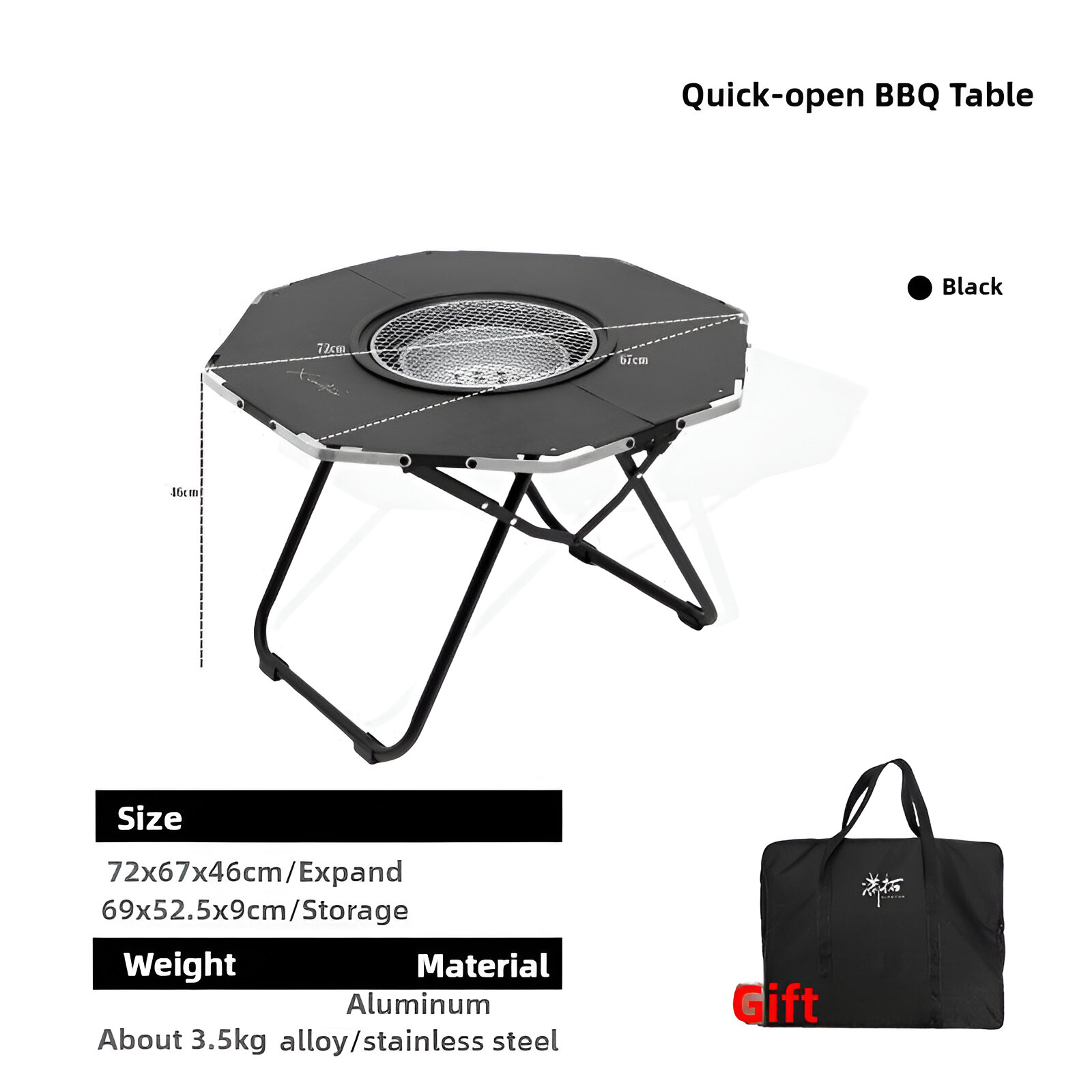 Designed for more than just grilling, this table also serves as a multi-functional outdoor station. Use the built-in charcoal stove for barbecuing your favorite meats and vegetables, or boil tea and coffee to enjoy a cozy outdoor moment. Its octagonal shape provides plenty of space for food prep, dining, and socializing, making it ideal for camping trips, picnics, or backyard gatherings.