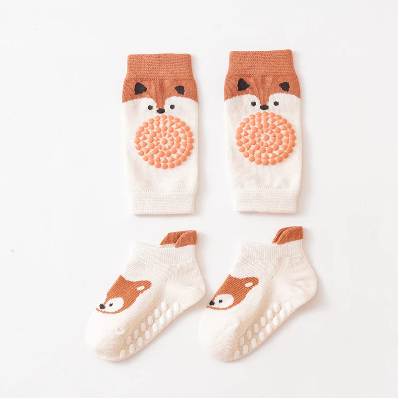 This set is more than just practical – it’s a fun, stylish way to help your baby stay safe as they learn to crawl and walk. The soft cotton material ensures your little one’s skin is protected, while the added cushioning on the knees offers extra comfort. Whether you’re at home or on the go, this set makes it easy to keep your baby moving with ease. Plus, the anti-slip socks provide that added bit of safety to prevent slips and falls on slick floors.