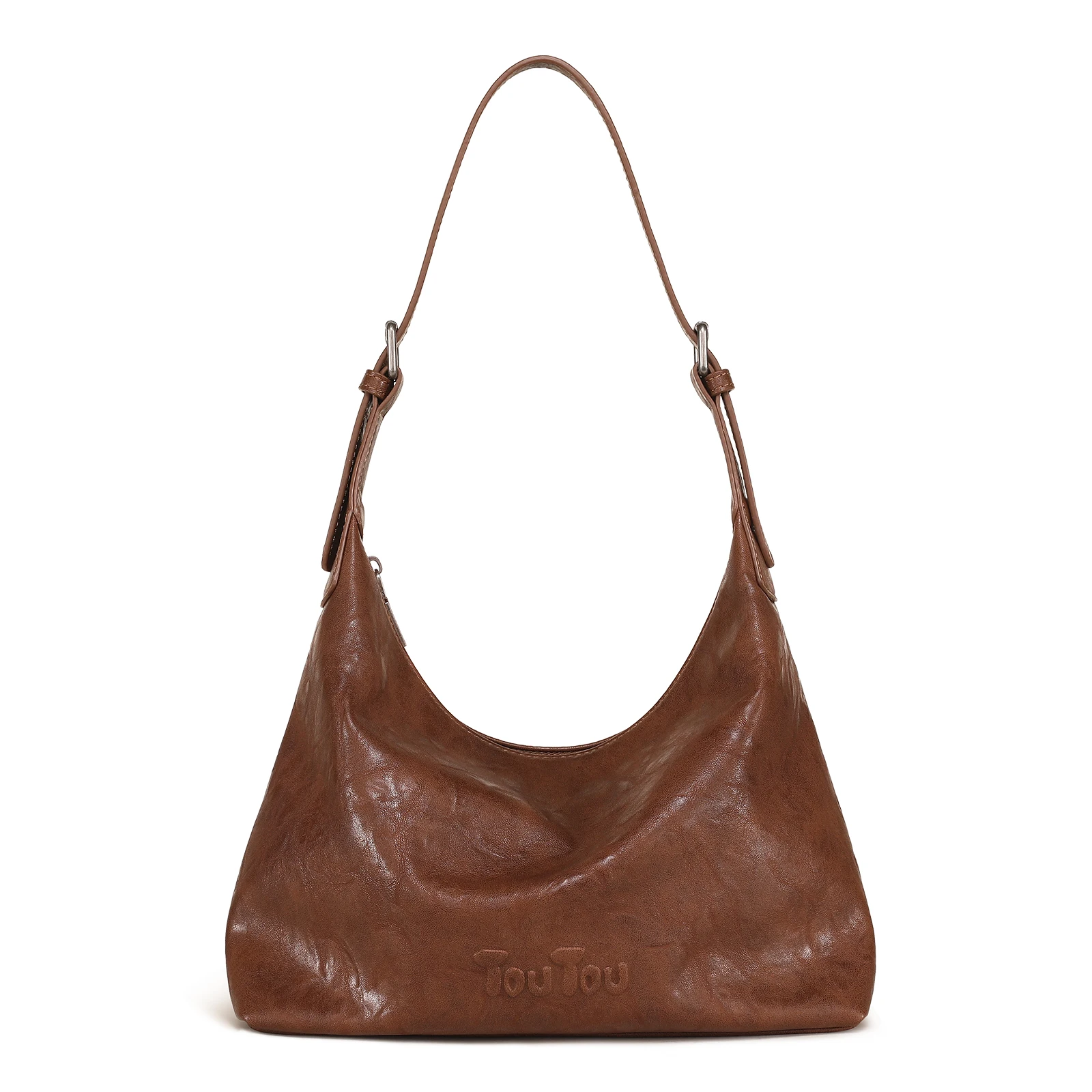 The classic vintage brown and black color combination adds an elegant touch, making it suitable for any occasion, from casual outings to more polished affairs. Its soft and flexible construction ensures a comfortable fit under the arm, while the structured shape keeps your items neatly organized. The practical zipper closure ensures the security of your belongings, while the spacious interior offers plenty of room for everything you need.