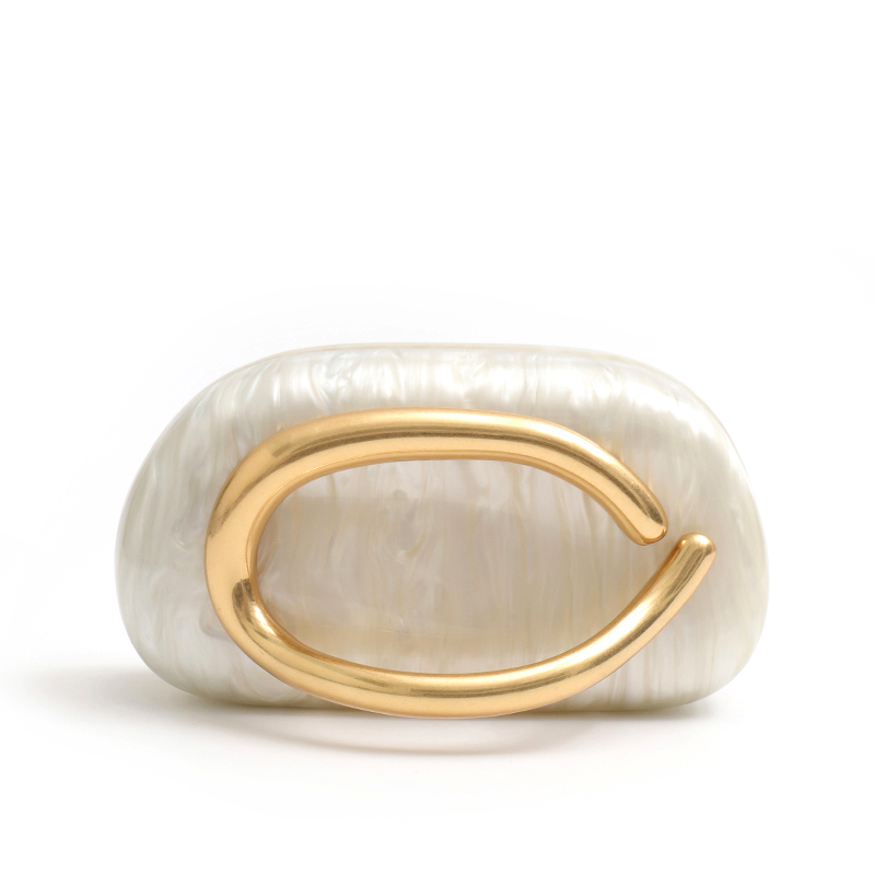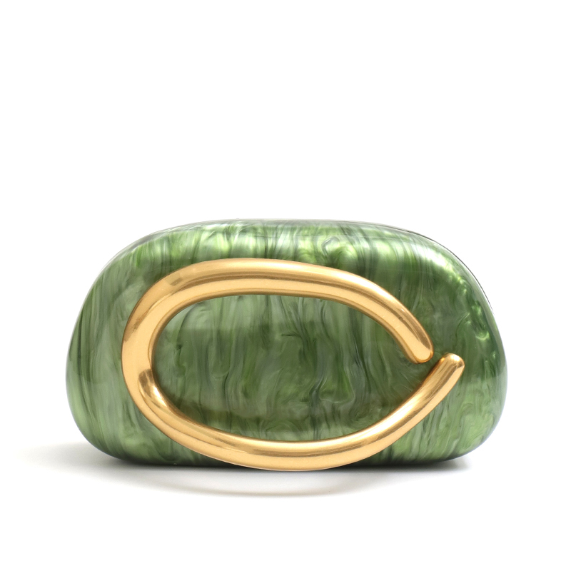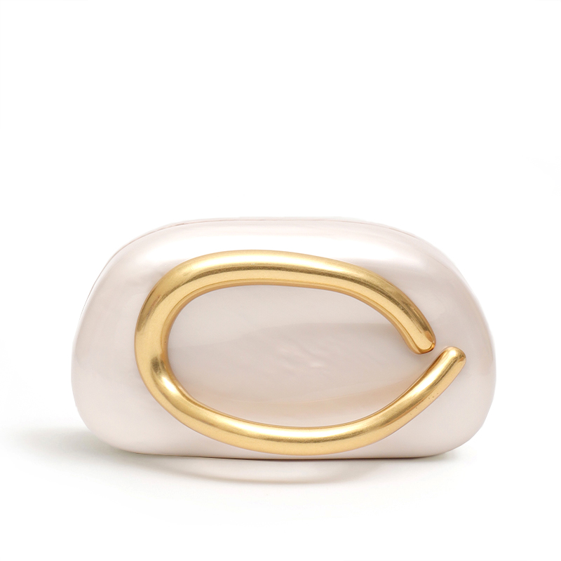 This evening clutch stands out not only because of its **distinctive shell shape** but also due to its **luxurious materials** and **high-end design**. The **acrylic** finish gives it a sleek, modern appeal, while the **metal handle** adds a bold, edgy contrast to its refined appearance. The compact size ensures that it’s practical enough to carry all your essentials, yet stylish enough to make a bold fashion statement. Its **magnetic closure** and **chain strap** enhance its functionality, allowing for hands-free convenience without compromising on style. This clutch is the perfect accessory for women who want a bag that balances both beauty and practicality, all while keeping them at the height of **fashionable elegance**.