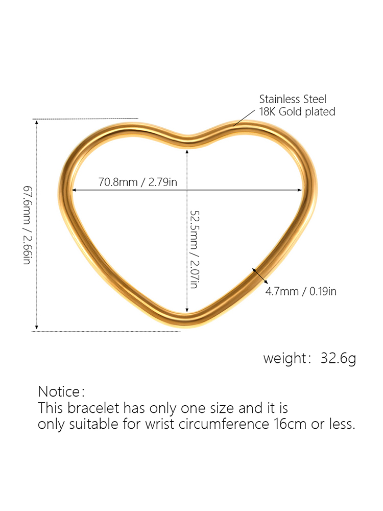 This heart-shaped bracelet is more than just a piece of jewelry—it’s a statement. The sleek, minimalist design adds a refined touch to any outfit without overwhelming your style. Perfect for women who love to embrace the latest trends, this bracelet effortlessly combines modern charm with classic elegance. The 18k gold plating enhances its luxurious feel, making it suitable for everything from daily wear to evening outings.