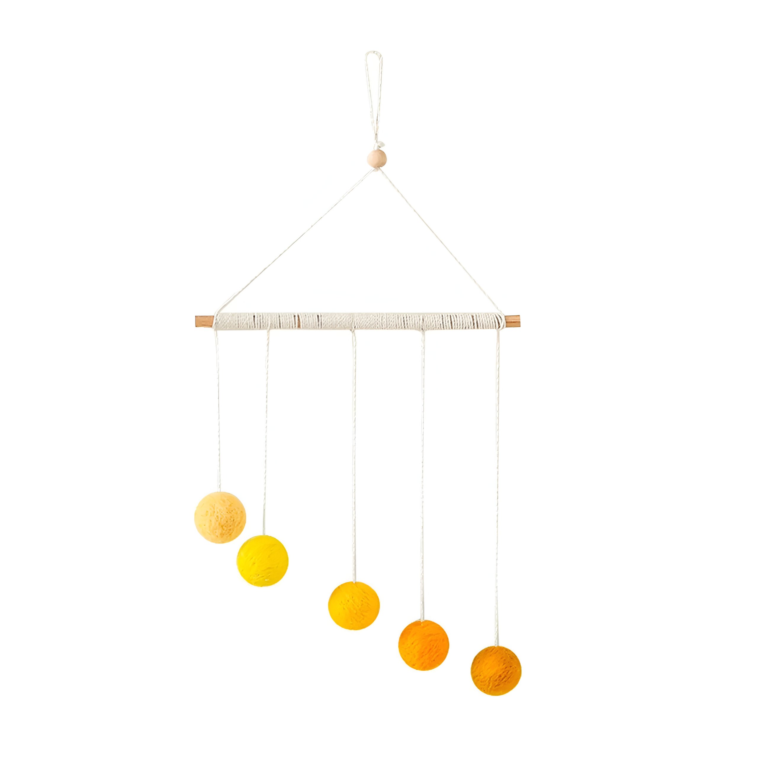 Transform your baby’s crib into a world of color, movement, and sensory discovery with the Montessori Plush Ball Mobile. This delightful hanging toy is designed to captivate your baby’s attention while supporting their cognitive and sensory development. Carefully crafted from natural materials, this mobile is as safe as it is engaging, making it the perfect addition to your baby’s nursery.