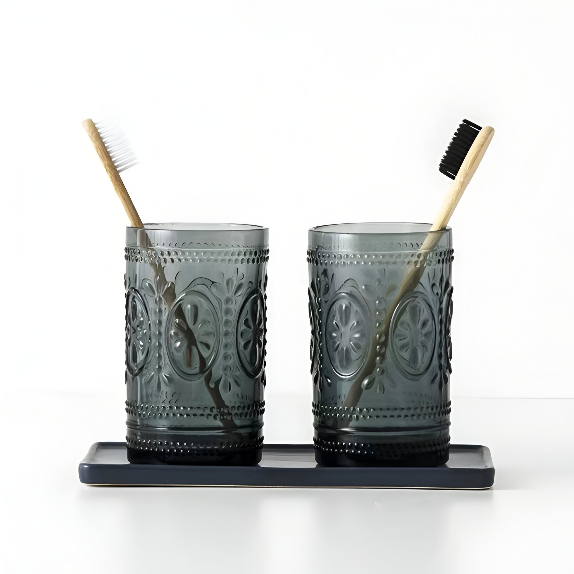 Transform your bathroom into a serene, clutter-free haven with the Nordic Glass Bathroom Accessory Set. Each piece has been carefully designed to meet both functional and aesthetic needs. The high-quality glass gives it a luxurious feel while being easy to clean and maintain. Whether you’re using the lotion dispenser for your favorite moisturizer or the toothbrush cup for a refreshing start to your day, each item serves a purpose in enhancing your bathroom experience.