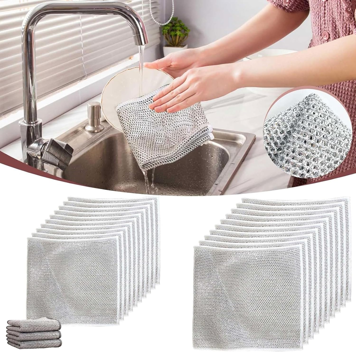 Elevate your cleaning routine with the 20/5Pcs Thickened Steel Wire Cleaning Cloth. Say goodbye to tough grease, dirt, and grime, and hello to a sparkling clean home. With its durable construction and superior cleaning power, this microfiber mesh dish rag is an essential tool for anyone looking to make their cleaning tasks faster, easier, and more efficient. Get yours today and experience the ultimate cleaning solution!