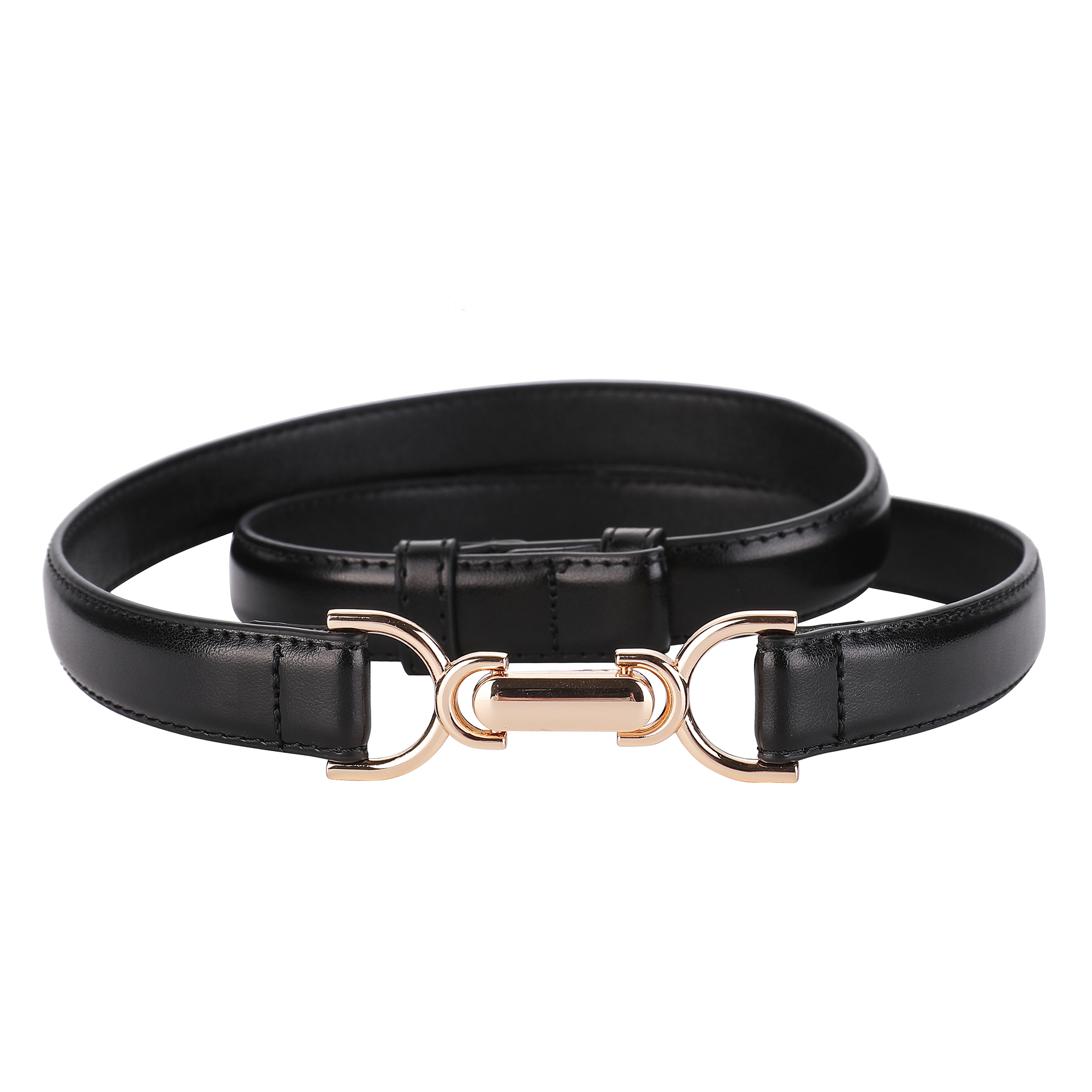 This women’s skinny leather belt stands out because of its combination of quality craftsmanship and fashion-forward design. The gold buckle adds a subtle luxury to any outfit, while the adjustable fit ensures that it will comfortably hug your waist all day long. No matter your body shape or size, this belt works to cinch your waist and give you that flattering hourglass shape. Plus, the genuine leather material means that this belt not only looks great but is also built to last.
